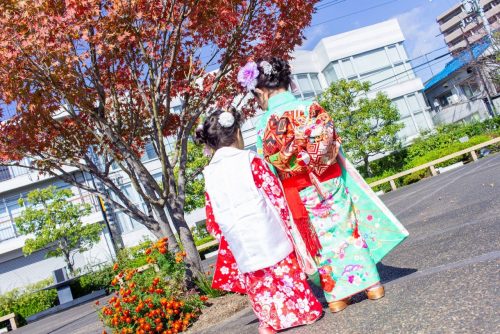 息子の転勤先で、七五三の衣装を着て
