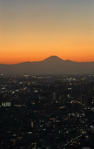 写真の最後の1枚は、綺麗な⼣焼けと富⼠⼭です。